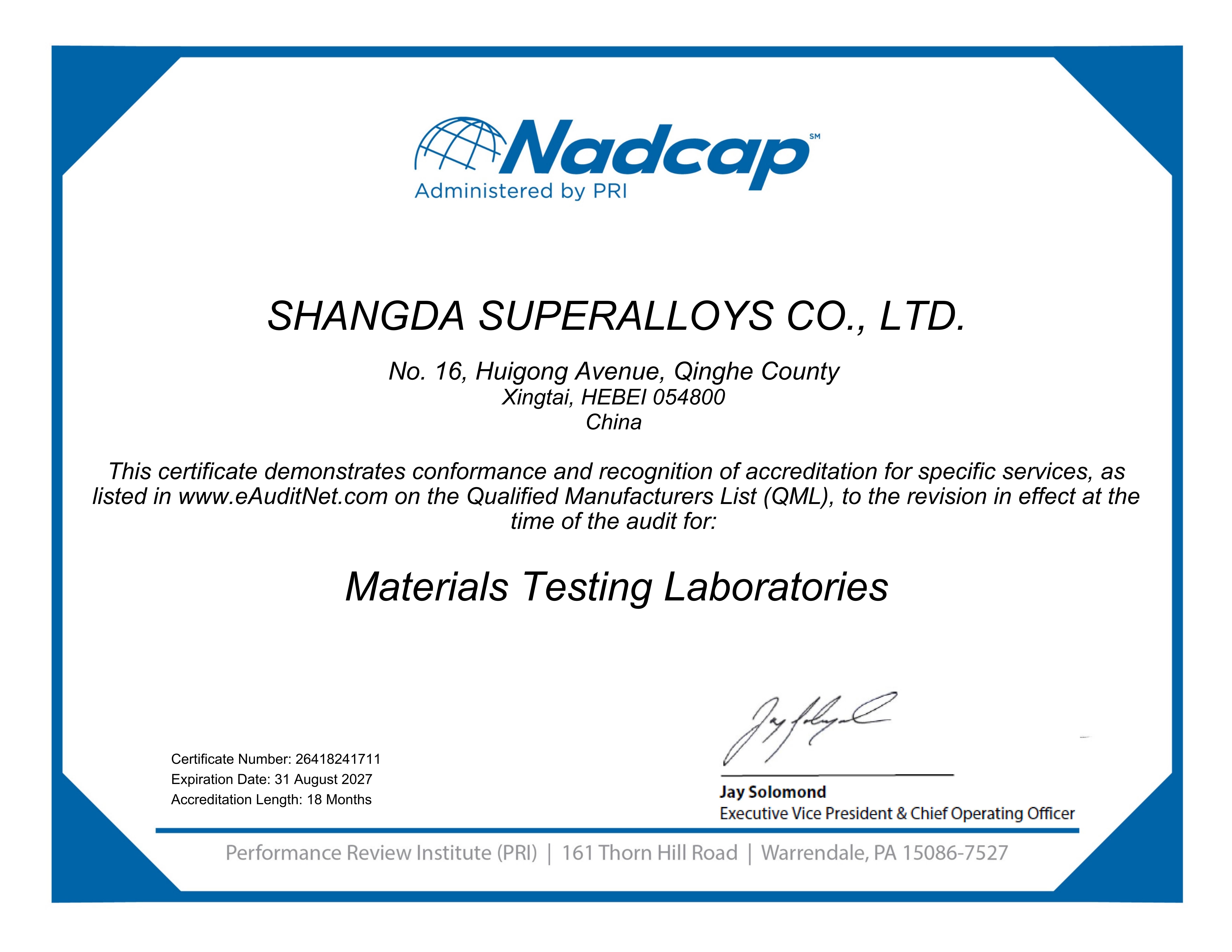 Nadcap certificate-MTL