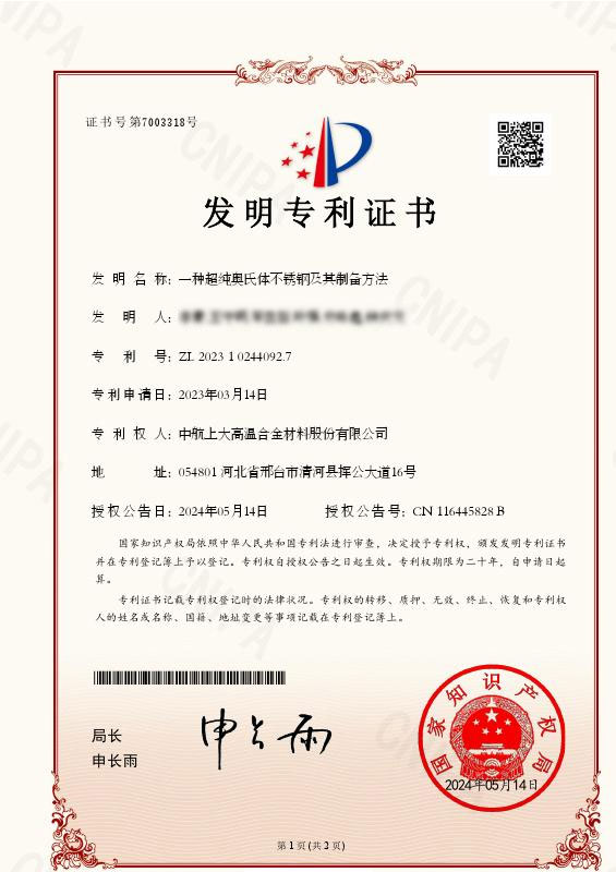 超纯净、超低铁素体316系列奥氏体不锈钢锻棒件的